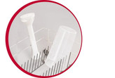 سری چهارگوش و منحنی گوشتکوب با سوراخهای بزرگ در طرفین طراحی شده است که مانع از ایجاد خلاء در داخل سری و چسبیدن آن به کف ظرف هنگام کار میشود. این دستگاه دارای تیغهای دوپرهای از جنس استیل ضدزنگ با شستوشوی آسان است؛ حتی میتوانید آن را داخل ماشین ظرفشویی بشویید. ضدزنگبودن تیغه باعث میشود در درازمدت، طعم موادغذایی تغییر نکند و کیفیت آن کاهش نیابد. این گوشتکوب بهطورکلی جای زیادی را در آشپزخانه اشغال نمیکند؛ اما شما میتوانید برای بهرهبردن بهینه از فضا، پس از استفاده، آن را به دیوار آویزان کنید؛ به این منظور دستهی کوچکی در بالای گوشتکوب برقی تعبیه شده است. پایهی دستگاه بهراحتی جدا میشود و قابلشستوشو در ماشین ظرفشویی است. به یاد داشته باشید هرگز موتور دستگاه را در تماس مستقیم با آب قرار ندهید و برای تمیزکردن آن از پارچهی نمدار استفاده کنید. همراه این دستگاه یک لیوان بزرگ 800 میلیلیتری عرضه میشود. لبهی لیوان با انحنای خفیفی طراحی شده است تا بتوان مواد را بهراحتی از آن خالی کرد. جنس لیوان از پلاستیک مرغوب و شفاف است و میتوان در آن انواع اسموتی و مخلوطهای مختلف را تهیه کرد.