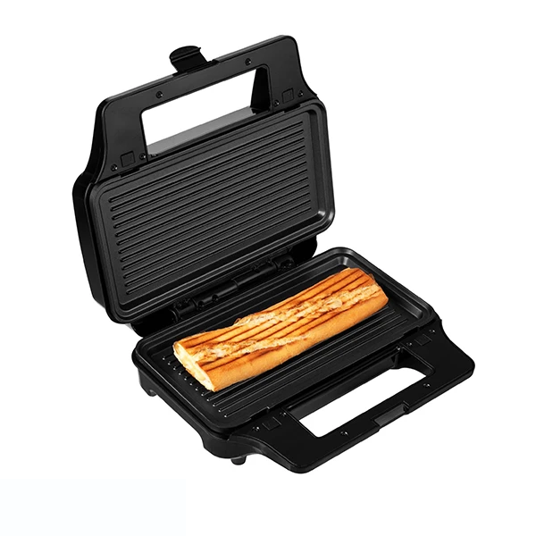 تعداد صفحه دو عدد تعداد درگاه ساندویچ سهگوش چهار عدد دستگاه آمادهسازی غذا تابه نچسب امکانات آماده سازی غذا گریل مقاوم در برابر دستگیره عایق حرارت حداکثر توان مصرفی 800 وزن 3 گرم ابعاد 320x160x360 سانتیمتر : 4 کاره
