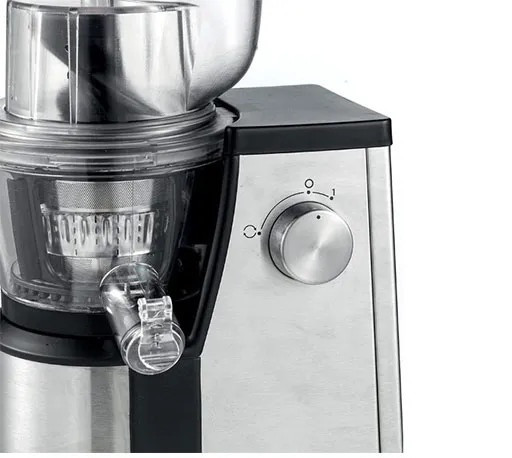 این دستگاه دارای سیستم تخلیهی خودکار تفاله، عملکرد ضدچکه و قابلیت عملکرد معکوس برای جلوگیری از گیرکردن مواد است. صدای فوقالعاده کم، پارچ آبمیوه و تفالهگیر یک لیتری و طراحی ارگونومیک با پایههای ضدلغزش، نشان از کیفیت بالای ساخت دارد.