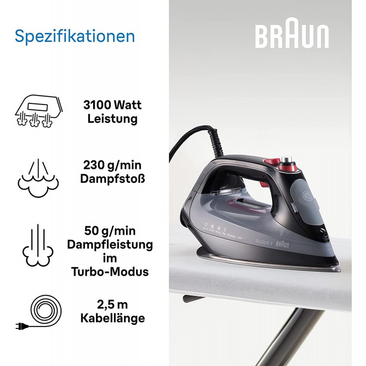 قدرتمند: اتو دارای 3100 وات و تقویت کننده بخار قوی 230 گرم در دقیقه است، به طوری که بخار آب به طور کامل به پارچه نفوذ می کند و حتی عمیق ترین چین و چروک ها را صاف می کند.