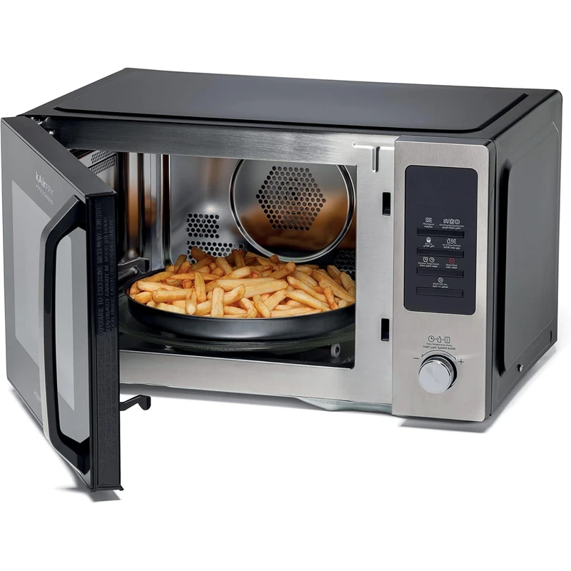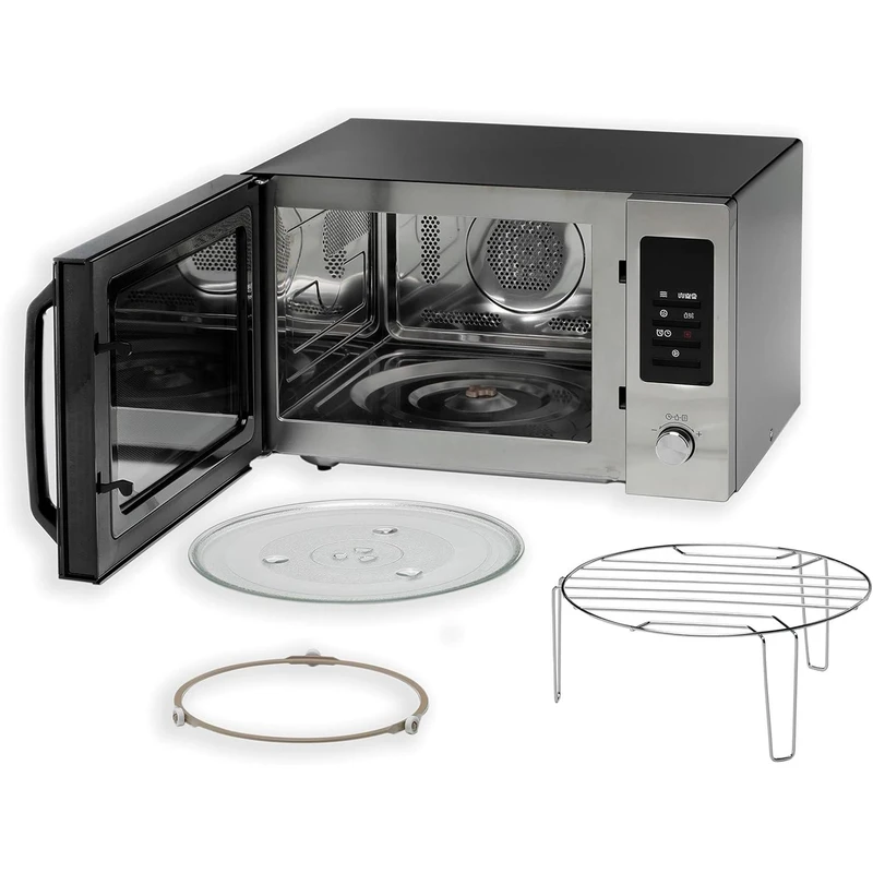ماکروویو چند منظوره مدل MWM30 از کمپانی کنوود بوده که به علت با کیفیت بودن محصولاتش یکی از به نام ترین برندها در زمینه تولید لوازم خانگی است. این ماکروویو بر اساس استاندارد های کشور انگلستان در کشور چین تولید می شود. رنگ استیل و مشکی این ماکروویو ظاهر بسیار شیک و جذابی به آن بخشیده است. ماکروویو MWM30 دارای قابلیت ماکرو ، گریل و پخت ترکیبی یا Combination (به طور خلاصه: کمبی) می باشد. عملکرد پخت ترکیبی به معنی استفاده هم زمان این دستگاه از حرارت المنت های گریل و اشعه ماکرو برای پخت غذاست. ظرفیت این دستگاه بسیار چشمگیر و برابر 30 لیتر بوده و این حجم زیاد کاملا برای خانواده های پر جمعیت مناسب می باشد. توان ورودی ماکروویو MWM30 به طور کلی بین 850 تا 900 وات و توان خروجی آن بسته به نوع کارکرد آن در حالت ماکرو بین 1400 تا 1450 وات و در حالت گریل بین 900 تا 1000 وات می باشد.کمپانی کنوود برای ماکروویو MWM30 ، هشت برنامه پیش فرض و قابلیت تنظیم درجه گرمایشی ماکروویو در 5 سطح مختلف قدرت در نظر گرفته است که شما با توجه به نوع مواد غذایی و با چرخاندن ولومی که در سمت راست دستگاه تعبیه شده است قادر به تنظیم دمای مورد نظر خود می باشید. همچنین این ولوم برای تنظیم زمان نیز به کار می رود و حداکثر زمانی که شما می توانید برای دستگاه MWM30 تعیین کنید تا 95 دقیقه بوده که به راحتی می توانید زمان و دما را روی صفحه نمایشگر دیجیتالی آن مشاهده کنید. این ماکروویو امکان شروع پخت غذا با تاخیر یا Time Delay را نیز دارد.از آن جایی که یخ زدایی مواد منجمد بسیار طاقت فرساست و غالبا خارج شدن دمای آن ها از حالت انجماد به دمای معمولی محیط بسیار وقت گیر است، کنوود ماکروویو MWM30 را به آپشن یخ زدایی (Defrost) نیز مجهز کرده است که مواد غذایی یخ زده را بر اساس وزن و زمان یخ زدایی می کند. برای استفاده راحت از قابلیت گریل دستگاه MWM30 یک سینی گریل نیز به همراه این محصول وجود دارد و باعث می شود مواد غذایی ای که می خواهند گریل شوند، گرمای یکنواختی را از طرفین دریافت کنند. جنس محفظه داخلی ماکروویو با کیفیت MWM30 کنوود از استیل بوده و دارای قابلیت Easy Clean است