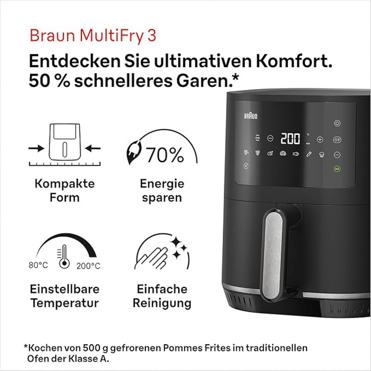 فناوری هوشمند تهویه مطبوع: سرخ کن HF 3030 با بهرهگیری از فناوری پیشرفته تهویه، به طور یکنواخت و بدون نیاز به روغن زیاد، مواد غذایی را سرخ میکند. این ویژگی به حفظ طعم طبیعی مواد غذایی کمک کرده و غذاهای سالمتری را ارائه میدهد.