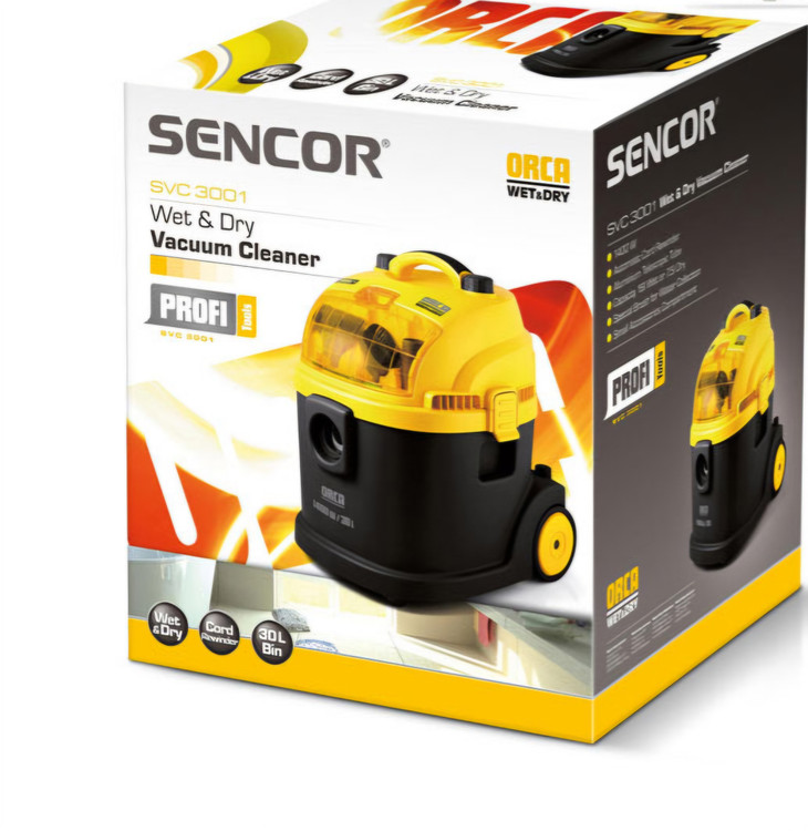 جاروبرقی SVC 3001 ORCA یکی از محصولات برند سنکور بوده که در مدل 2010 و با کیفیت بالایی طراحی شده است. بدنه این محصول از جنس پلاستیک بسیار با کیفیت و با رنگ زرد بوده که می تواند فضای اطراف خود را بسیار جذاب تر کند. لوله این دستگاه به صورت تلسکوپی و از جنس آلومینیوم ساخته شده و دارای برس ها و پارویی مخصوص می باشد، که برای استفاده در انواع سطوح مختلف بی نظیر است. طراحی بدنه دستگاه نیز به صورت استوانه بوده و دارای دو چرخ بزرگ لاستیکی در عقب و یک چرخ کوچک در زیر آن است که جابه جایی و حرکت را بسیار آسان تر و راحت تر کرده است.