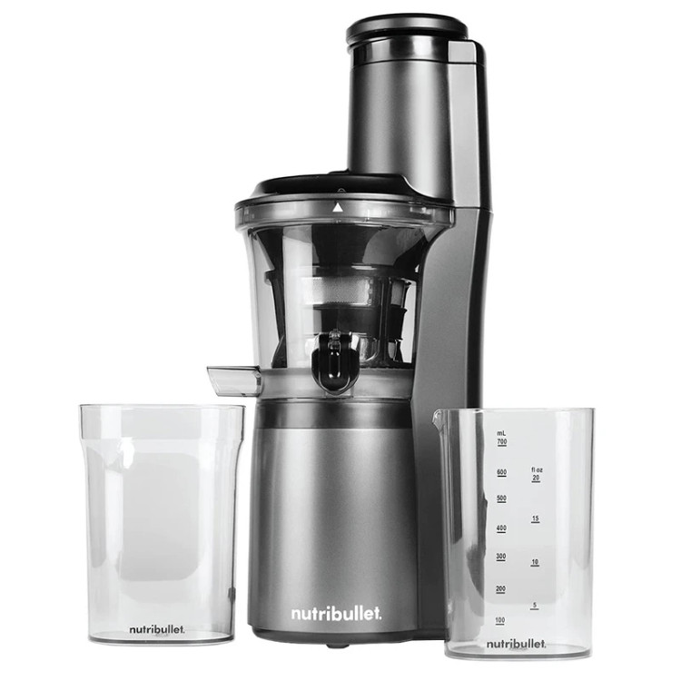 توان مصرفی 150 وات سایز دهانه ورودی 7.6 سانتی متر تک سرعته دارد سرعت موتور 56 دور در دقیقه با گشتاور بالا جنس بدنه پلاستیک، استیل ضد زنگ بدون BPA دارد انواع تیغه های دستگاه تیغه پلاستیکی برای له کردن تیغه استیل برای جداسازی کامل