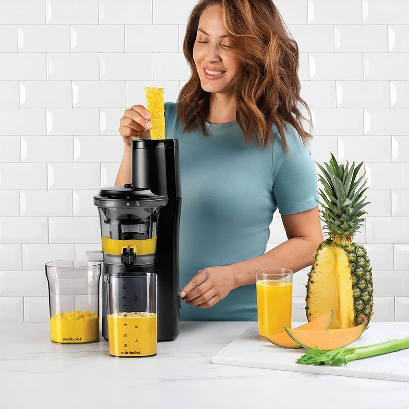توان مصرفی 150 وات سایز دهانه ورودی 7.6 سانتی متر تک سرعته دارد سرعت موتور 56 دور در دقیقه با گشتاور بالا جنس بدنه پلاستیک، استیل ضد زنگ بدون BPA دارد انواع تیغه های دستگاه تیغه پلاستیکی برای له کردن تیغه استیل برای جداسازی کامل