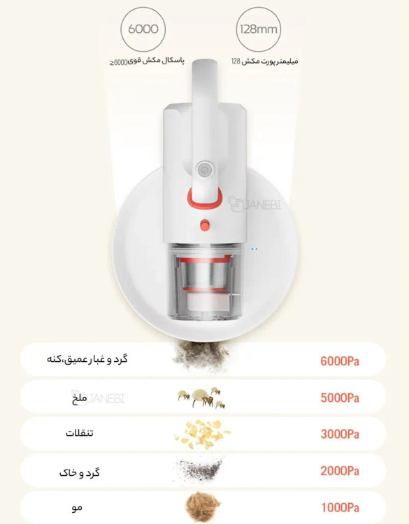 موتور DC قدرتمند این جارو شارژی علاوه بر حالت کنترل کننده گرد و غبار: عمیق در هر فیبر. حالت خلاء: جذب روی میز ، قفسه های کتاب و سایر گرد و غبار و زباله را دارد و 6000Pa مکش آن است