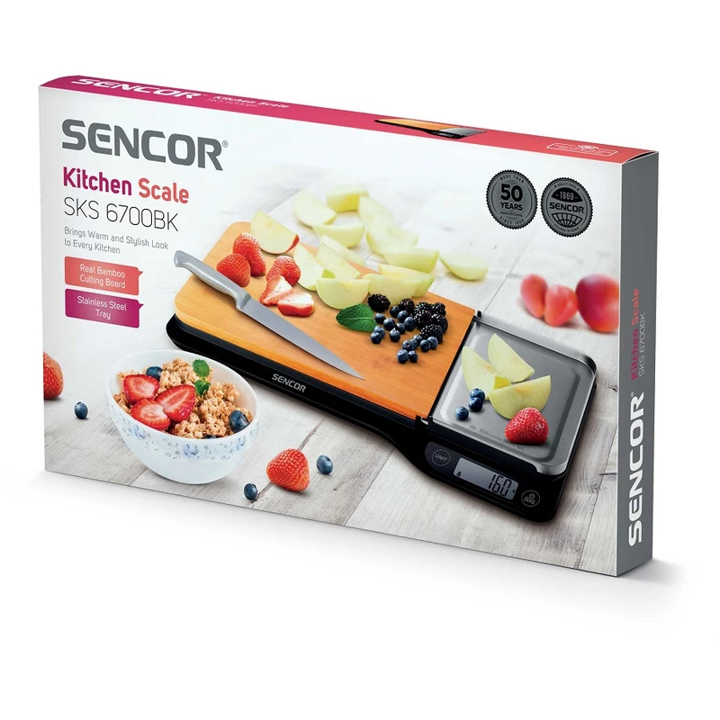 سایر توضیحات ترازوی آشپزخانه SKS 6700BK و قسمت اصلی آن تخته برش بامبو است که می توان روی آن مواد مختلفی برای توزین تهیه کرد. در مقایسه با ترازو مدل های دیگر ، سطح تخته برش جادارتری با ابعاد 35x25 سانتی متر دارد . از زمان آشپزی خود با این ترازو لذت ببرید، به لطف ترکیب یک تخته برش و یک ظرف توزین استیل ضد زنگ، می توانید هنگام کمپینگ نیز استفاده کنید و مواد لازم را برای دستور غذای مورد علاقه خود وزن کنید. همراه با تخته برش، من یک بدنه از دو قسمت ایجاد می کنم که به راحتی جدا می شود، به سادگی شسته می شود یا جداگانه استفاده می شود. این ترازو با 4 سنسور حساس برای وزن کردن مجهز کرد تا ترازوی آشپزخانه دقیق تری باشد که همیشه بتوانید به آن اعتماد کنید. صفحه ال سی دی مقادیر وزن شده را نشان می دهد بر روی صفحه نمایش LCD ، می توانم واحدهای وزنی مختلف کیلوگرم، میلی لیتر، اونس و پوند: اونس را تنظیم کنم. برای ساده تر و واضح تر کردن عملیات، من امکان انتخاب سه حالت برای اندازه گیری وزن جامد، آب و شیر را می دهم. من حالت ها را از طریق نمادهایی که در هنگام انتخاب روی صفحه نمایش ظاهر می شوند، به تصویر می کشم. البته من تابع TARE را برای تنظیم مجدد وزن همه ظروف و مواد وزن شده نیز دارم. اگر 2 دقیقه بیکار باشم، به طور خودکار خاموش می شوم تا به شما در مورد کم شدن باتری و اضافه بار سنسور هشدار دهم. توابع و خواص: ترازو الکترونیکی آشپزخانه با تخته برش بامبو واقعی و سینی استیل ضد زنگ جداشدنی ، 4 سنسور برای دقت توزین بالاتر ، عملکرد TARE ، نور پس زمینه متضاد برای خوانایی خوب ،محدوده وزن تا 5 کیلوگرم / 11 پوند (دقیق تا 1 گرم / 0.1 اونس) ،آب و میلی گرم ،خاموش شدن خودکار ، نشانگر شارژ باتری و نشانگر اضافه بار ،قابل کارکرد با دو باتری : 2 × 1.5 ولت باتری AAA