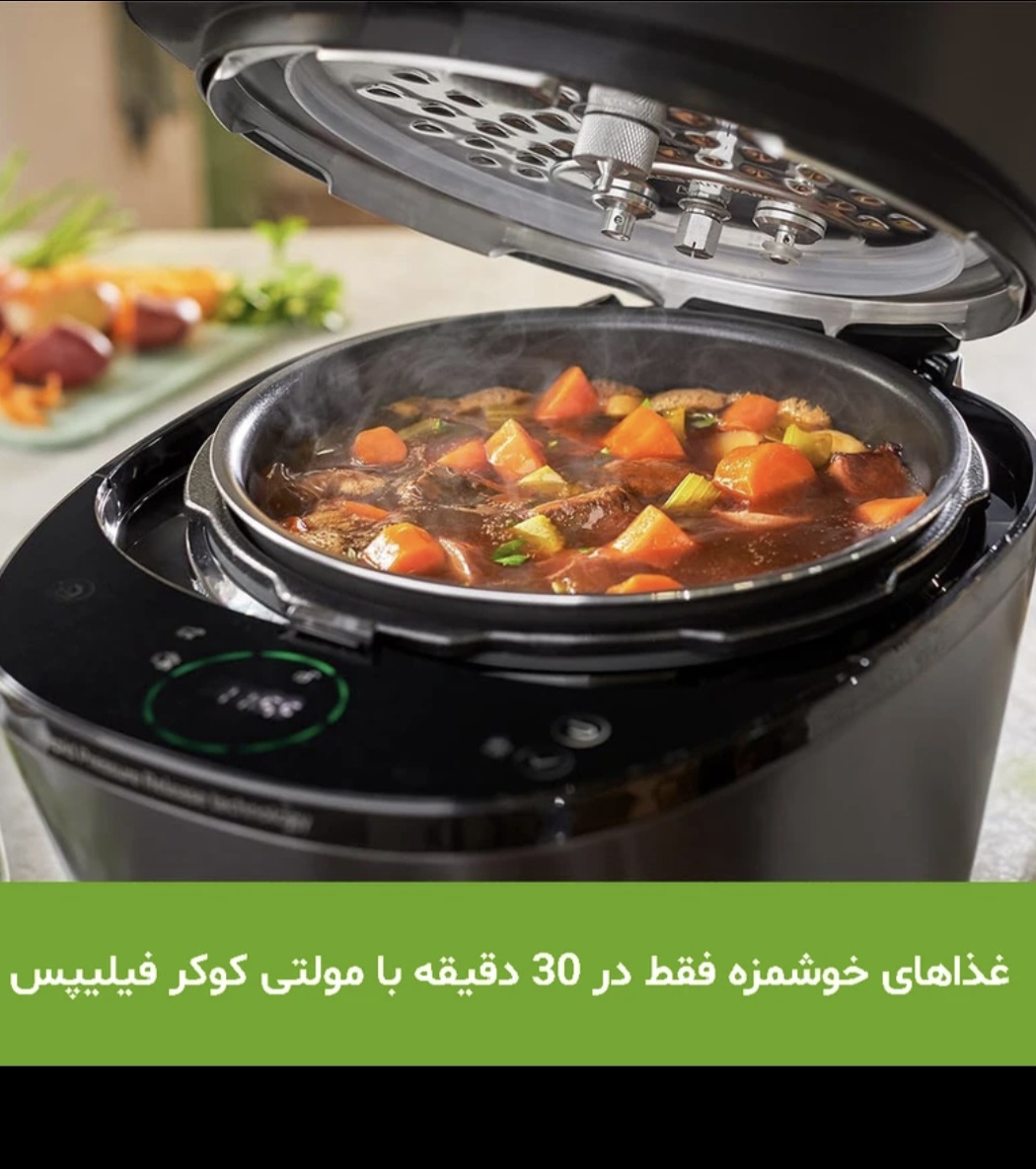 سایر توضیحات چهار روش پخت از قبیل زودپز، آرام پز در دو سطح بالا و پایین و بخارپز / قابلیت اعمال تنظیم دستی / تهیه سس / قابلیت ذخیره برنامه پخت / برخورداری از سیستم کنترل طعم / قابلیت تنظیم مقدار فشار / قابلیت دوباره گرمکردن / قابلیت اجرای برنامه با تاخیر 24 ساعته/ قابلیت تنظیم 35 برنامه / دارای ۱۸ سیستم حفاظت ایمنی برای پخت و پز بدون نگرانی